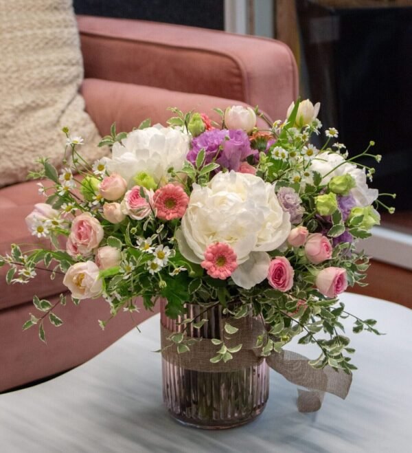 A soft and romantic mix of white, pink, and purple blooms — thoughtfully arranged by our talented florist. Perfect as a heartfelt gift or to refresh your space with elegant, seasonal flowers. Each bouquet is unique and made with care to create something truly memorable for your loved one.